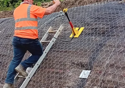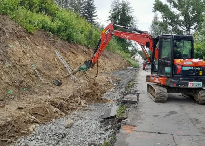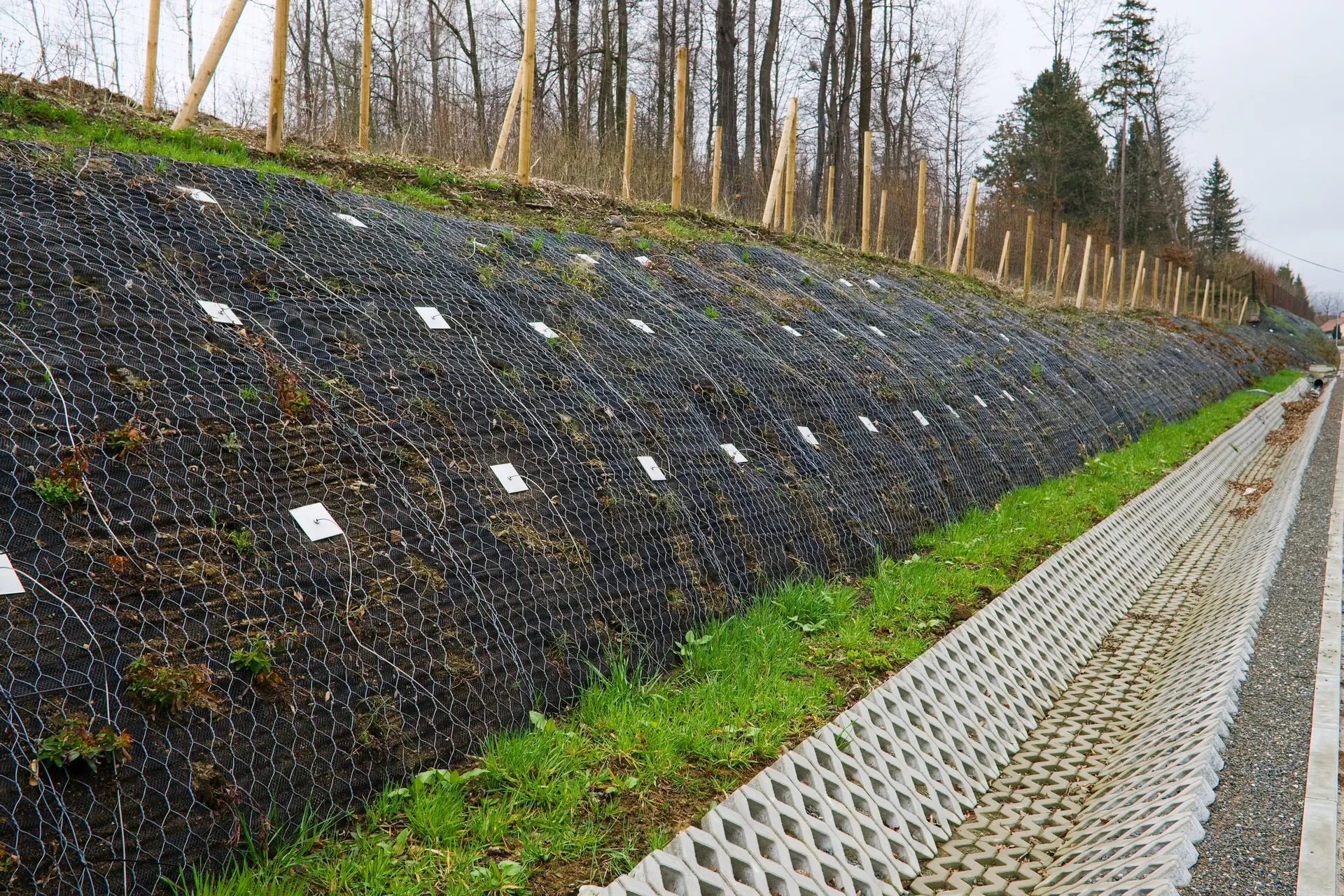 The local council identified the need to widen the busy main road running through Lubno due to the absence of sidewalks. To accommodate the high volume of pedestrians and cyclists using the very scenic route, sidewalks were planned on one side of the road. The cut is situated on the north facing south on the carriageway. The existing slope needed to be excavated to create the necessary space. The project involved reprofiling a 256m long slope, cutting it back at angles between 50° and 60°, with heights ranging from 2.0 to 5.5m and also a shorter (approx. 25m) slope, with a height between 0.7-1m at an 80° angle.