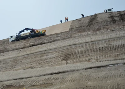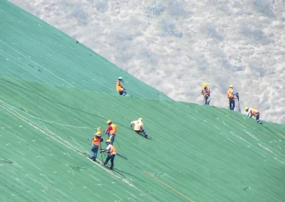 Steep cuts along the newly constructed access road to the airport required surface protection against deep erosion and shallow surface sliding. Traditional shotcrete methods were used on much of the easy access areas. The extremely high slopes posed difficulties for traditional methods so Platipus introduced the Anchored Reinforced Grid Solution (ARGS®) to protect the surface. The solution was employed and recently withstood a 5.1 earthquake on the 12th of August 2014 while other unprotected areas experienced some failures.