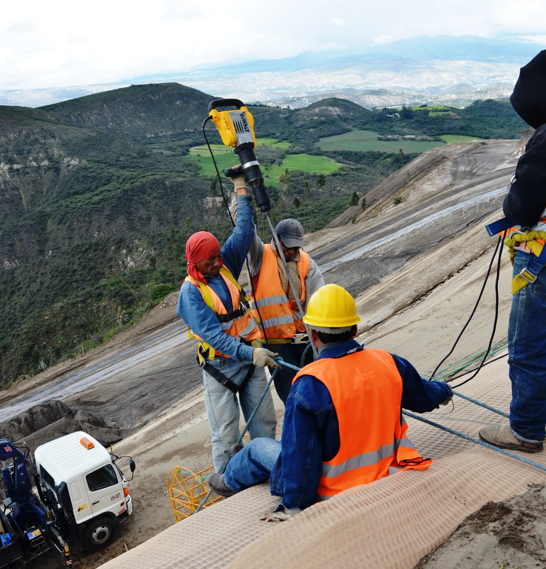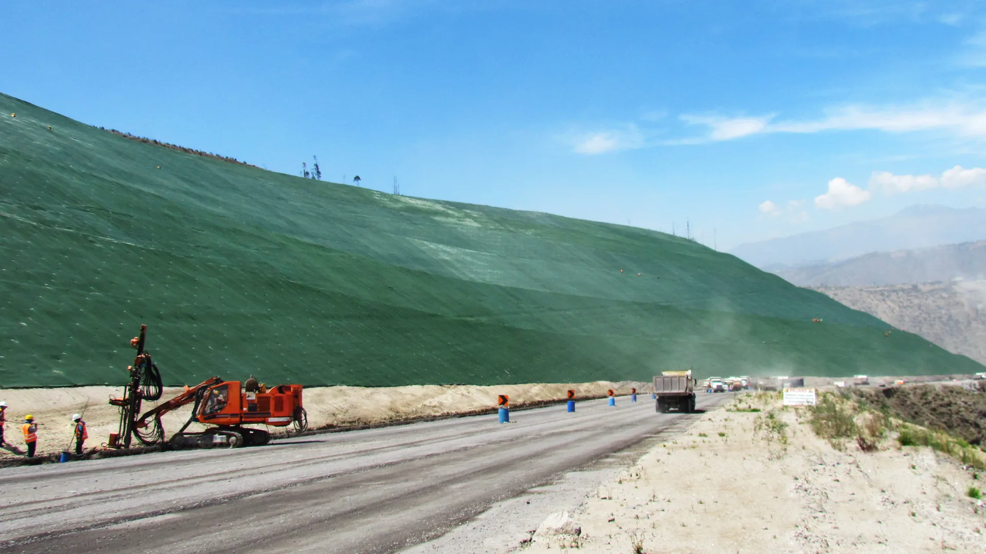 Minova protected steep airport access slopes in Quito using anchored reinforced grids, delivering erosion control, seismic resilience and stability.