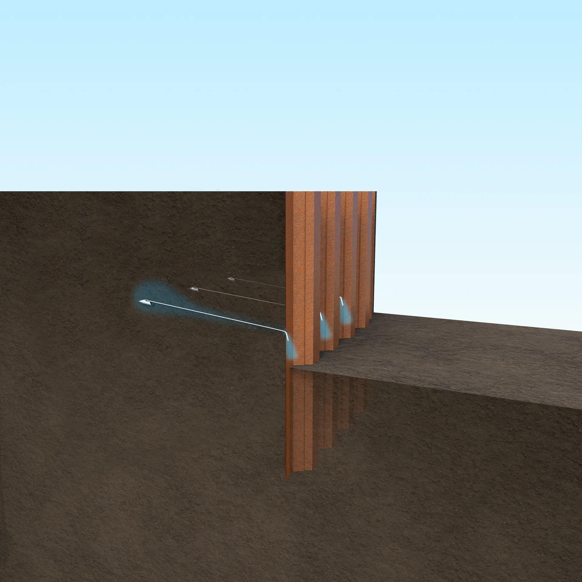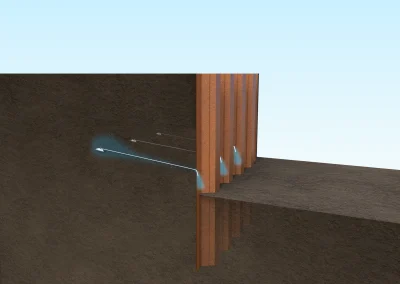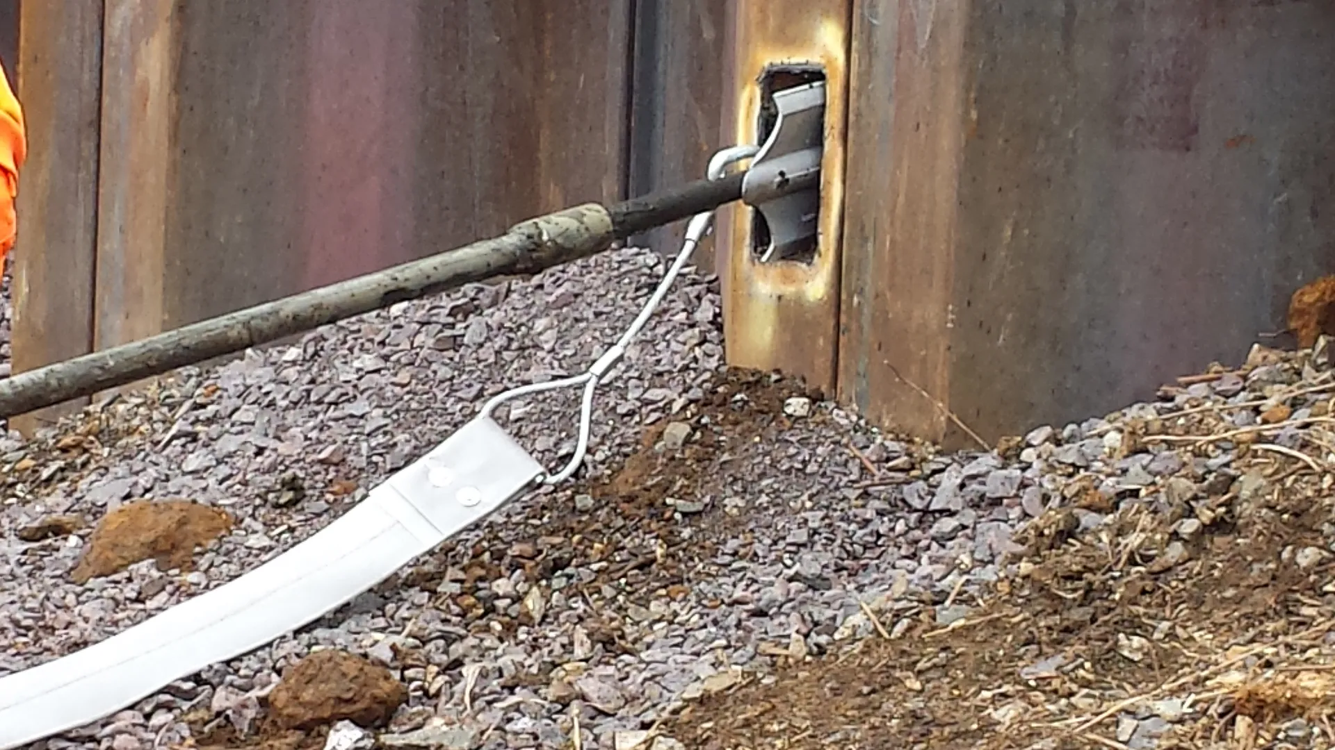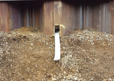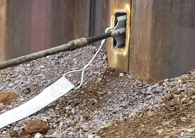 Plati-Drains were percussively driven 6m into the embankment at a slight inclination through slots cut into the piles at 4.8m centres. The anchor head serves as a vehicle to drag the drain material into the ground providing an immediate channel for the water to flow from deep inside the embankment. The Plati-Drain system is a simple, quick and cost-effective solution to reduce hydrostatic and pore water pressure.