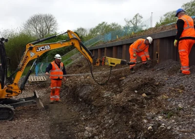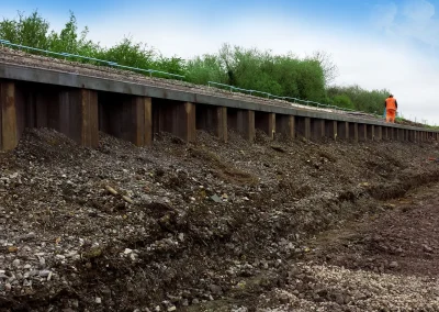 In response to an embankment failure sheet piling was installed to secure the slope from further failures. As part of this remediation work Network Rail specified the use of Plati-Drain™ as a drainage solution. Preventing future issues arising from a build-up of hydrostatic and pore water pressure from behind the sheet piling.